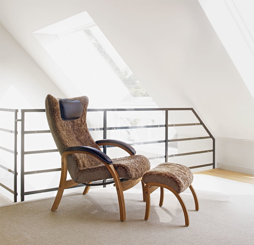 Fåtölj + Pall Easy i fårskinn Sahara