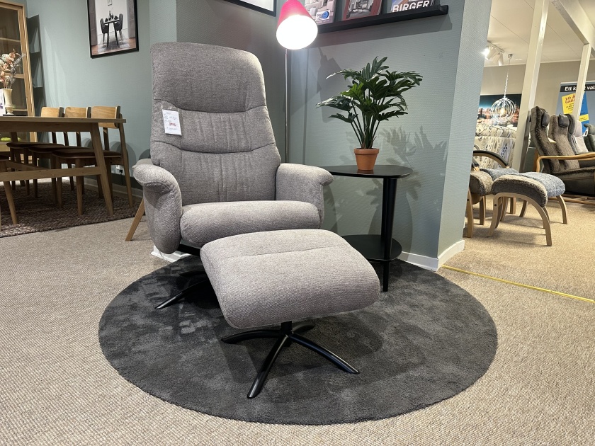 Fåtölj + Pall Basel i tyg Loft grå